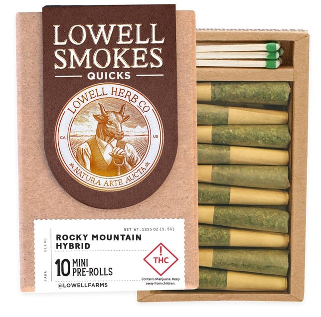Lowell’s classic smokes pack has become a symbol for quality and craftsmanship for millions of consumers nationwide and is also available in a pack of 10 mini-pre-rolls. These Indica-dominant pre-rolls are blended using only premium, whole flower - no trim or shake. Each blend contains a curated ratio of 2-3 strains containing complimentary terpene profiles; this process brings forth a broader terpene profile and more full-bodied flavor than what a single genetic can provide. Just like the Classic Smokes, Quicks also come completely self-contained with ten .35g pre-rolls, matches, and a striker so you’ve got everything you need to spark adventure anywhere.