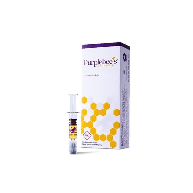 At Purplebee’s extraction is an art. Our terpene-infused distillate provides a more flavorful and potent vaping experience with 80%+ THC potency. The Purplebee’s syringe offers a more precise dosing mechanism to utilize your favorite flavored distillate in more ways. Top off your flower or pre-roll with distillate, refill a cart, or even use it to dab. Our syringe uses a locking tip and applicator to help prevent leakage and waste. Available in well-known sativa dominant strains Sour Diesel and Super Lemon Haze.