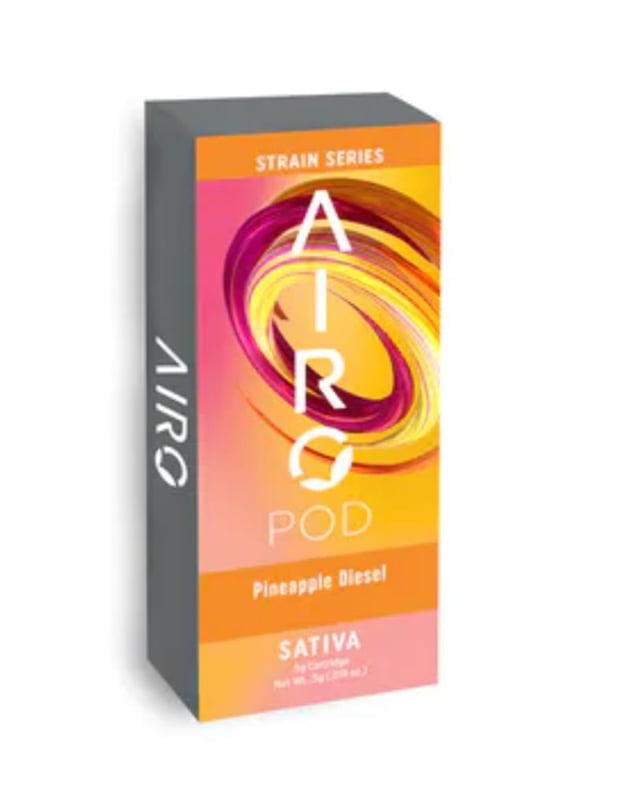 Airo Brands delivers an intuitive, virtually effortless, and cleverly designed vapor experience with a focus on design, vapor delivery, quality, and one-of-a-kind oils. AiroPro’s Advanced Vapor System pen provides a smooth, easy draw that vibrates to let you know it’s working. The magnetic, leak-resistant ceramic cartridges pop on and off for easy use. Pineapple diesel crosses a hybrid pineapple and a sativa sour diesel to produce a lift both mentally and physically. This psychoactive sativa in this 1g cartridge delivers clear and energized cerebral effects making it optimal for daytime use and activity.