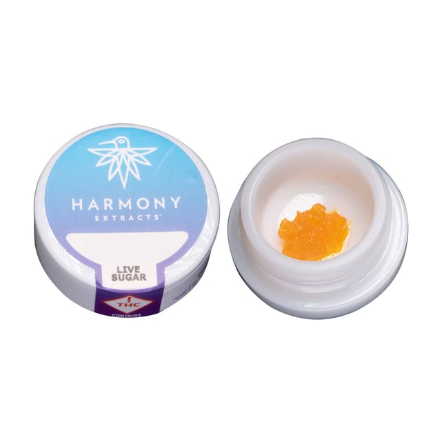 Harmony Indica-Dominant Live Sugar consists of THCa crystals enveloped in rich terpene sauce delivering a customizable dab in an easy to use texture. Always from Harmony-grown, fresh-frozen flower, preserving the terpene profile of the live plant for consistent and delicious concentrates. Your budtender will ask for your strain preference.