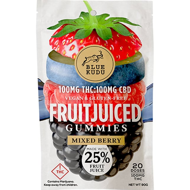 Chill out, you've got this. BlueKudu's 1:1 infused FRUITJUICED Gummies deliver perfect berry-filled dosing with 25% fruit juice in every bite. Our naturally-flavored, vegan and gluten-free gummy is big on taste and texture for the ultimate uplifting experience. A delicious way to unwind and mellow out. Available as twenty 5mg servings, to help you find the perfect dosage!