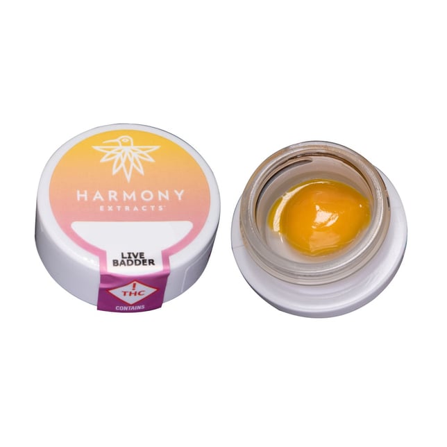 This Sativa-Dominant Harmony Live Badder is made by whipping the THCa crystals and terpenes into a creamy, homogenous texture for the most consistent dabs each time. Always from Harmony-grown, fresh-frozen flower, preserving the terpene profile of the live plant for consistent and delicious concentrates. Your budtender will ask for your strain preference.