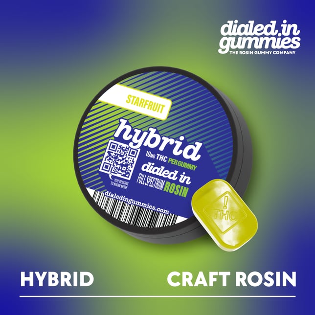 Dialed In gummies are produced in small batches using a unique sous vide process and high quality ingredients derived from fruits and vegetables. Every batch is infused with a solventless rosin processed from strain specific collaborations with some of the finest cultivators in Colorado. The 100mg pack of hybrid gummies contains 10 pieces and provides an energizing, euphoric, yet balanced experience.
