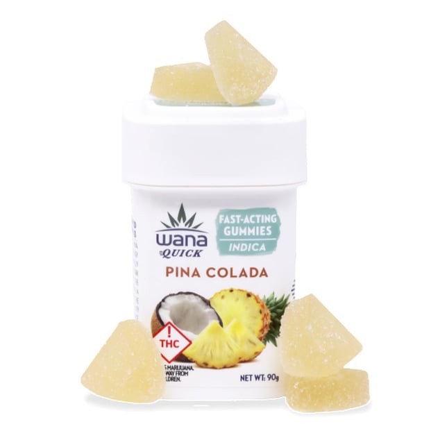 Fast, effective, and innovative, Wana Quick Gummies harness TiME™ (Thermodynamic individual Molecular Encapsulation), a new quick onset technology from Azuca. Azuca TiME™ creates individually encapsulated cannabinoids that work at the molecular level to enter the bloodstream immediately, providing a 5-15 minute onset and Delta-9-THC effects lasting up to 2-3 hours for most people. This fast-acting technology is paired with the rich and creamy pineapple and coconut flavors of a pina colada. Contains 20 5mg gummies.