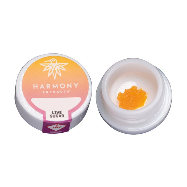Harmony Sativa-Dominant Live Sugar consists of THCa crystals enveloped in rich terpene sauce delivering a customizable dab in an easy to use texture. Always from Harmony-grown, fresh-frozen flower, preserving the terpene profile of the live plant for consistent and delicious concentrates. Your budtender will ask for your strain preference.