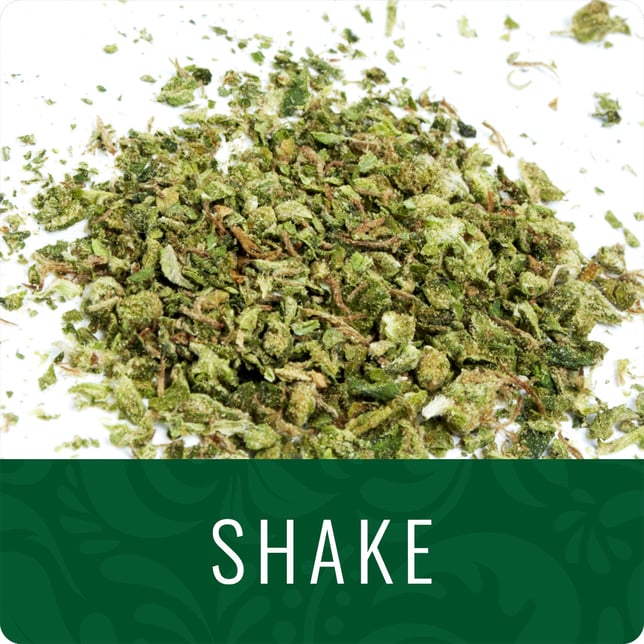 Shake is small parts of cannabis flower that have come off larger buds naturally through handling. This form is ideal for rolling joints. Sativa strains of shake provide uplifting, cerebral effects.
